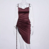 New Satin Green Prom Dress Spaghetti Strap Party Evening Dress